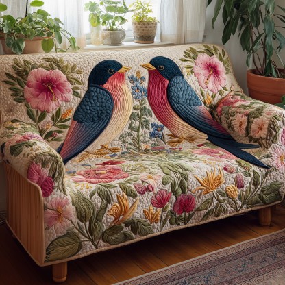 Floral Swallow Quilted Sofa Cover GFTOQA1024