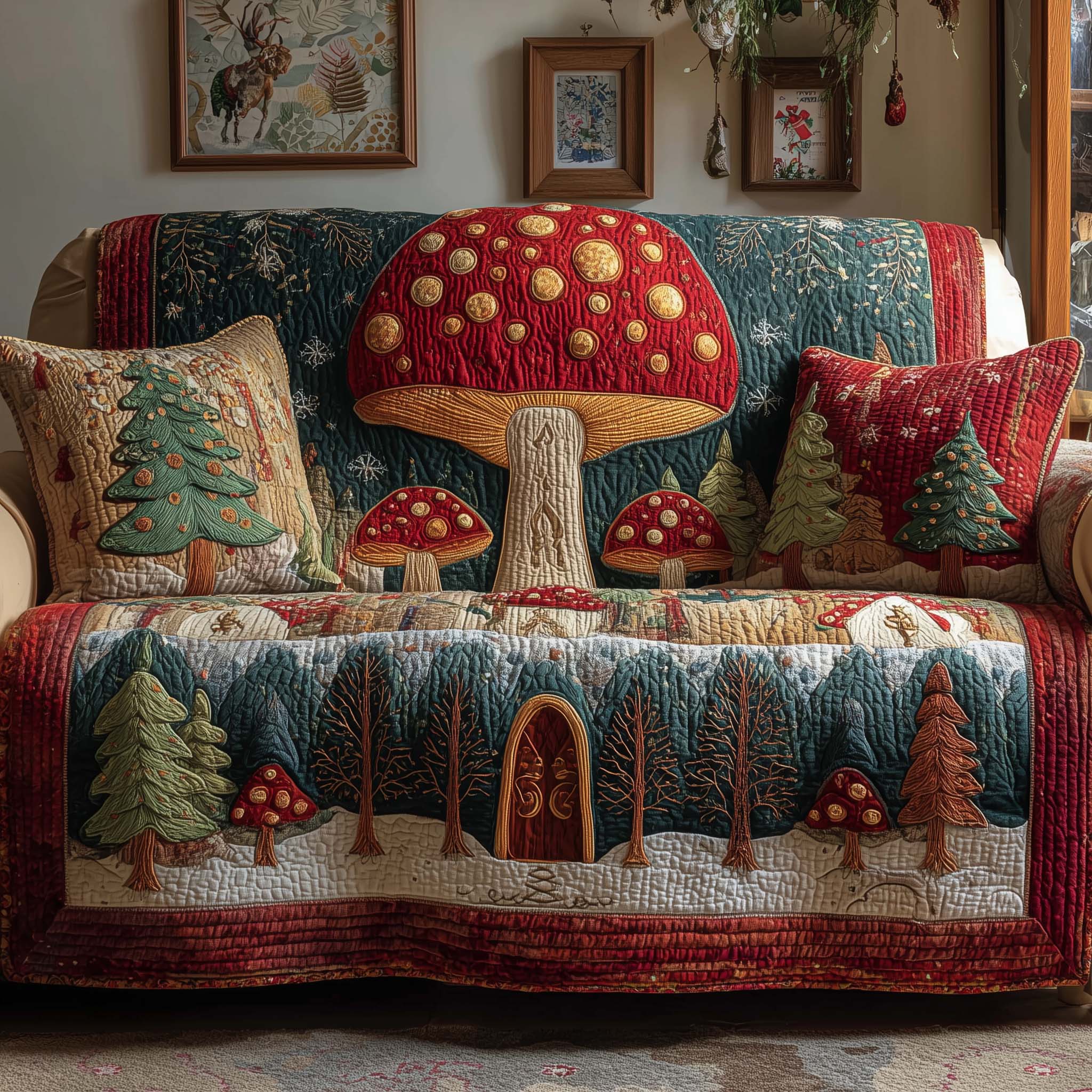 Mushroom Forest Quilted Sofa Cover GFTOQM1350